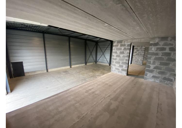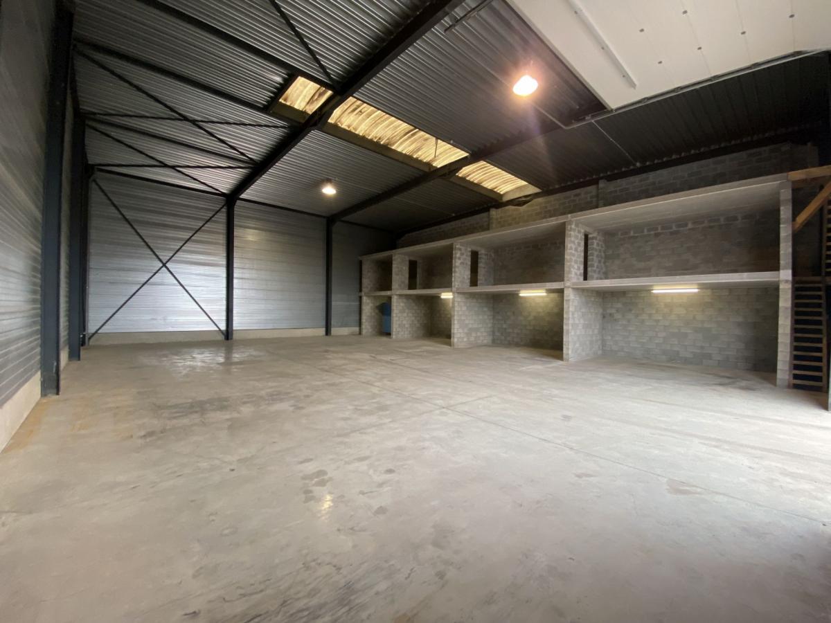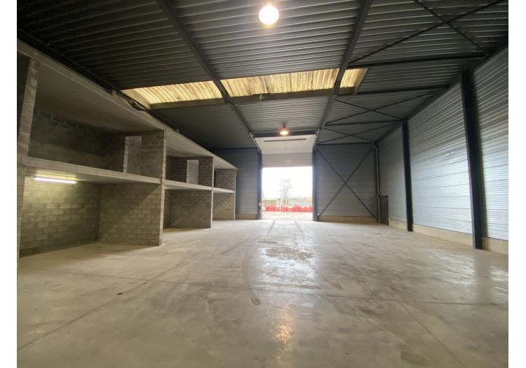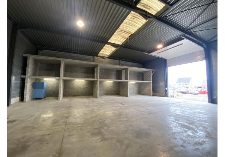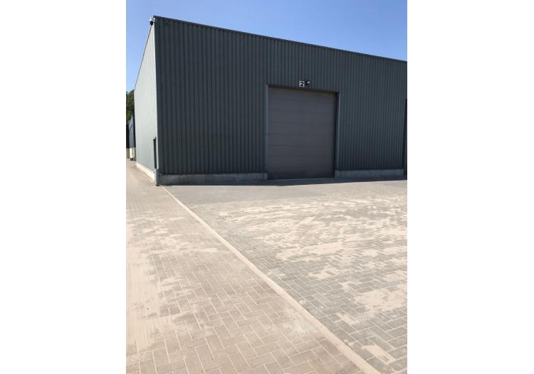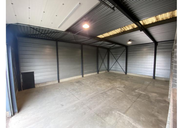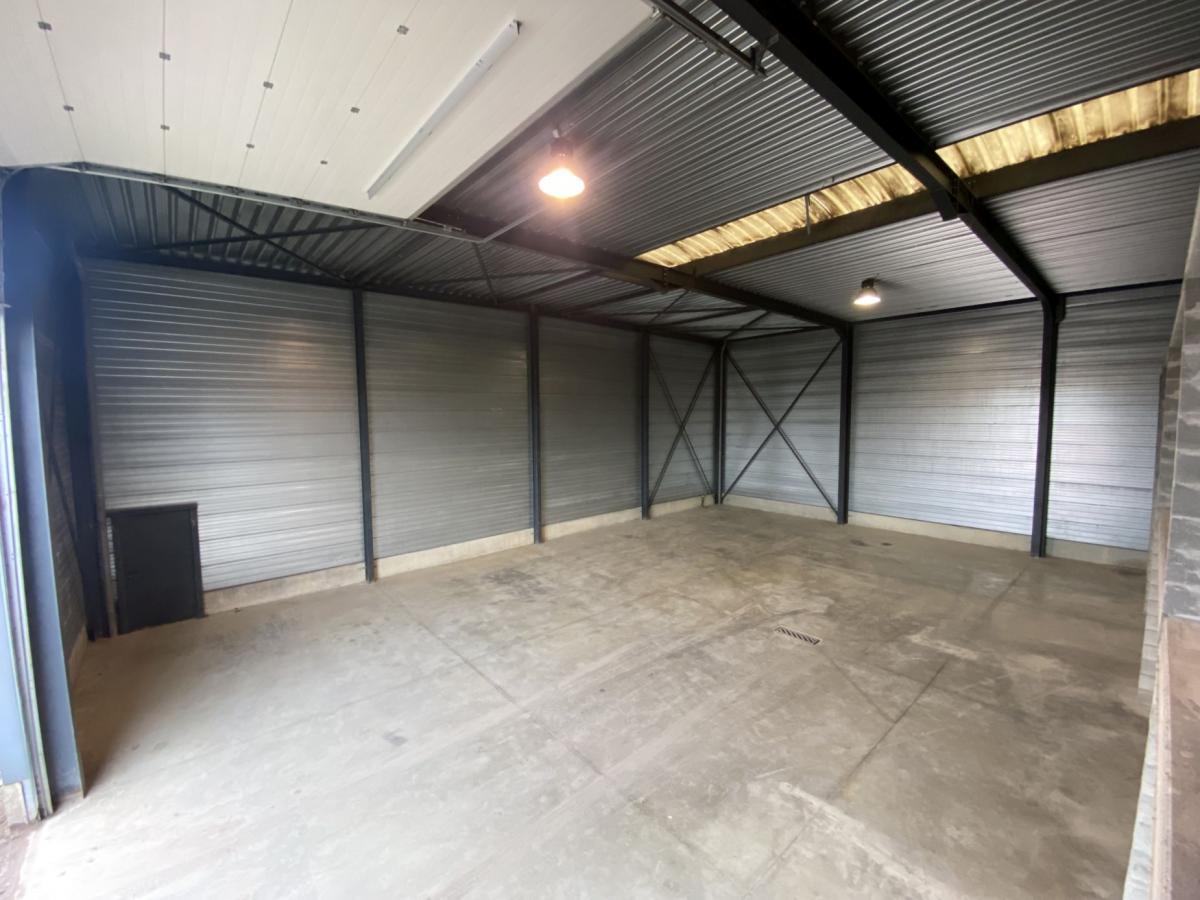 De unit is uitgerust met een automatische sectionaalpoort (4,5m breed op 4,8m hoog). Binnenin is er een gepolierde betonvloer met aan de rechterzijde een betonnen constructie om materialen in de hoogte te kunnen stapelen. De hoogte binnen in de unit bedraagt 6,6m.
